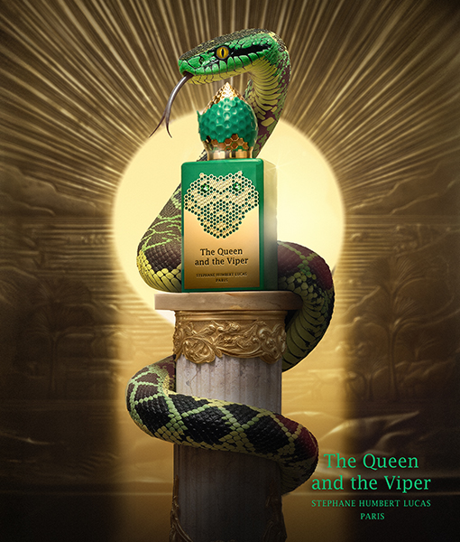 Questa volta la sinestesia di Stéphane Humbert Lucas cattura, in una bottiglia color smeraldo, il profondo amore vissuto dalla Regina Egizia Cleopatra e da Marco Antonio, fidato luogotenente di Giulio Cesare.
