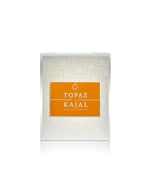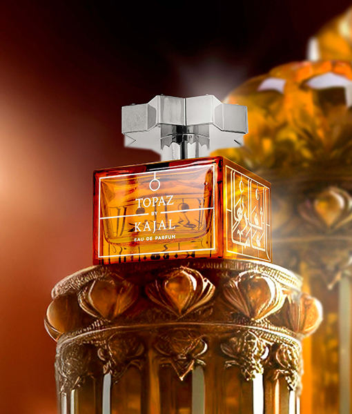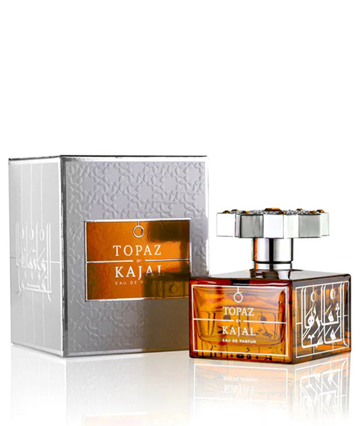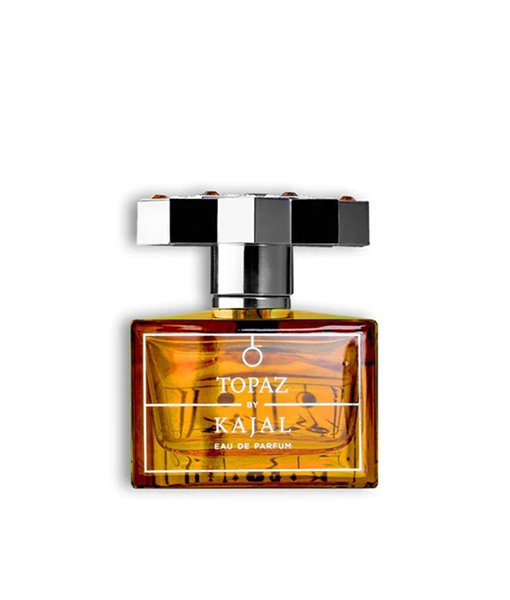 Topaz di Kajal si apre con una fusione elegantemente vivace di limone nero, fiori di sambuco, olio di rhum e fiore d’arancio, un fiore che rappresenta l’abbondanza e la felicità.